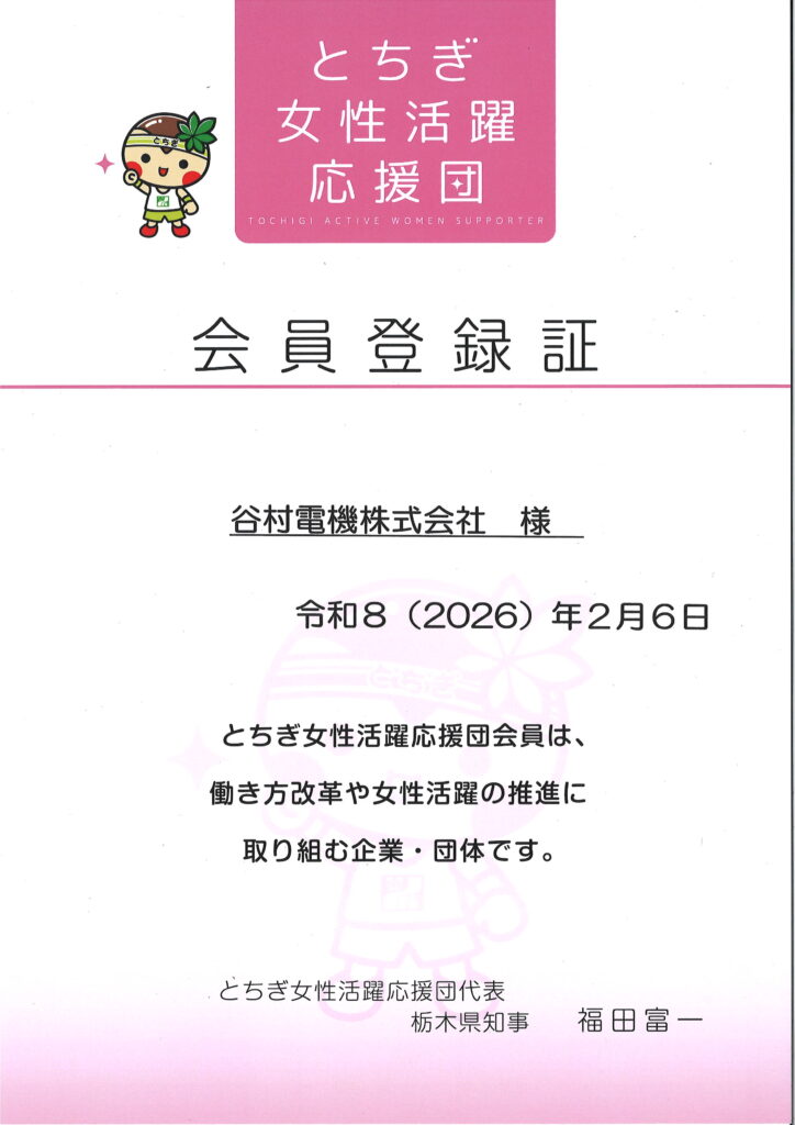 この度、わが社でとちぎ女性活躍応援団に登録させて頂きました。
